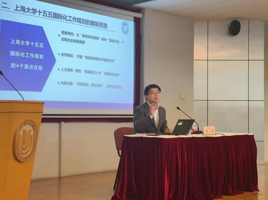 培训期间,除了专题讲座以外,还同步开展了专题研讨与外事工作沙龙。在“校院联动,共擘上海大学‘十五五’国际化新蓝图”专题研讨中,国际部党委副书记、国际部副部长、国际合作处处长崔巍与各二级学院围绕校院协同推进国际化建设展开深入交流,凝聚了发展共识。