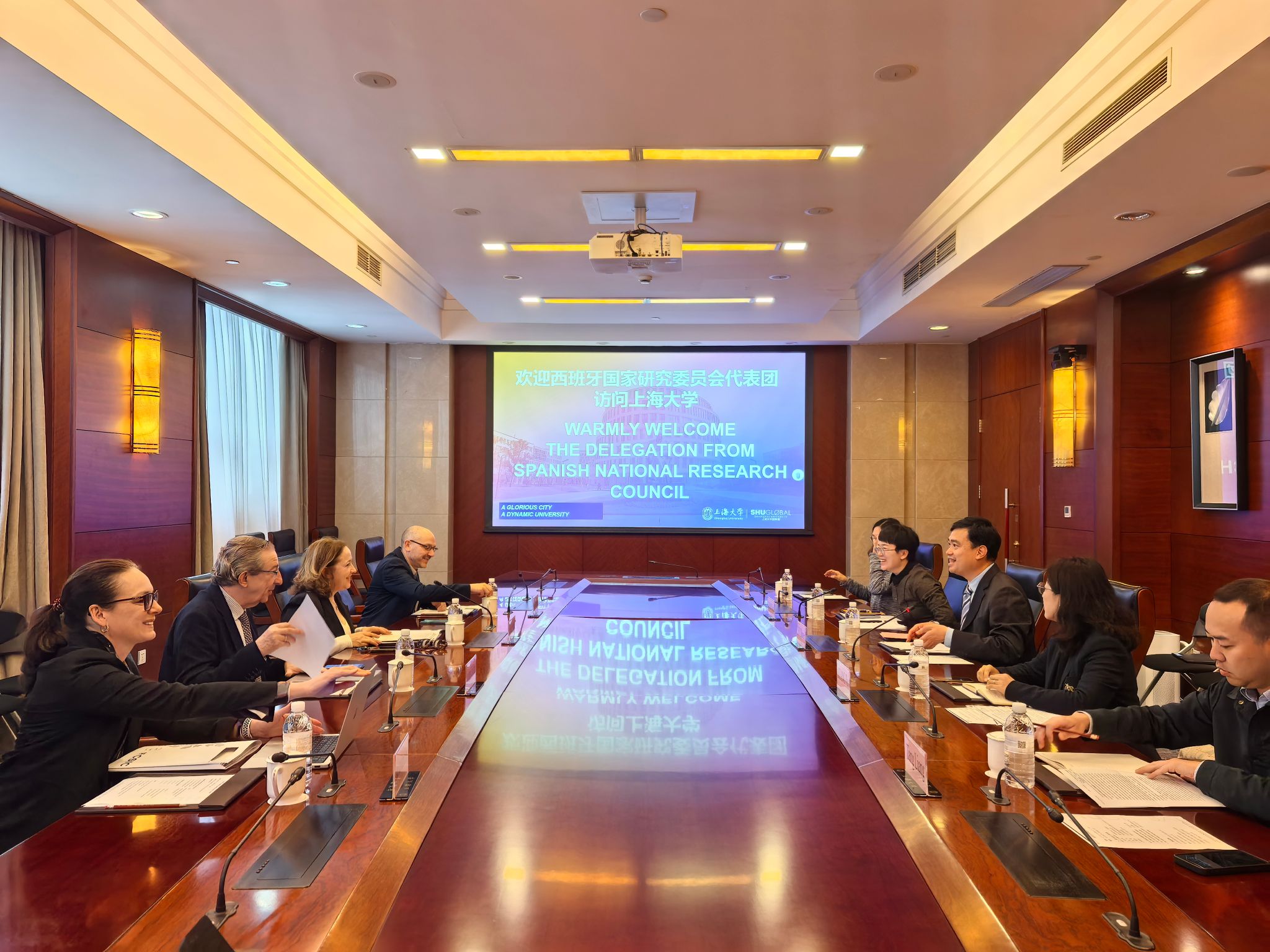 4月13日上午,西班牙国家研究委员会(CSIC)主席María Eloísa del Pino Matute女士到访上海大学,校党委副书记、副校长胡大伟接待了来访团一行。 胡大伟表示,上海大学是一所国际化的综合性研究型大学,学校学科门类齐全,高度重视国际科研合作并已取得了显著成绩。CSIC有着雄厚的研究力量,其重点发展领域与上海大学即将实施的“跃升计划”有诸多契合之处,未来双方科研团队可加强交流互鉴,共同开展高价值的科研合作和高层次人才联合培养。 María Eloísa del Pino Matute主席感谢学校的热情接待,并表示,CSIC是欧洲第三大科研机构,始终秉持科研探索服务社会发展的宗旨,中国高校有着一大批优秀的科研工作者,CSIC欢迎中国伙伴积极参与前沿课题国际联合研究,并可提供相应的研究资源支持。 西班牙驻沪总领事陪同来访。学校科研管理部、国际部、生命学院相关同志参会。