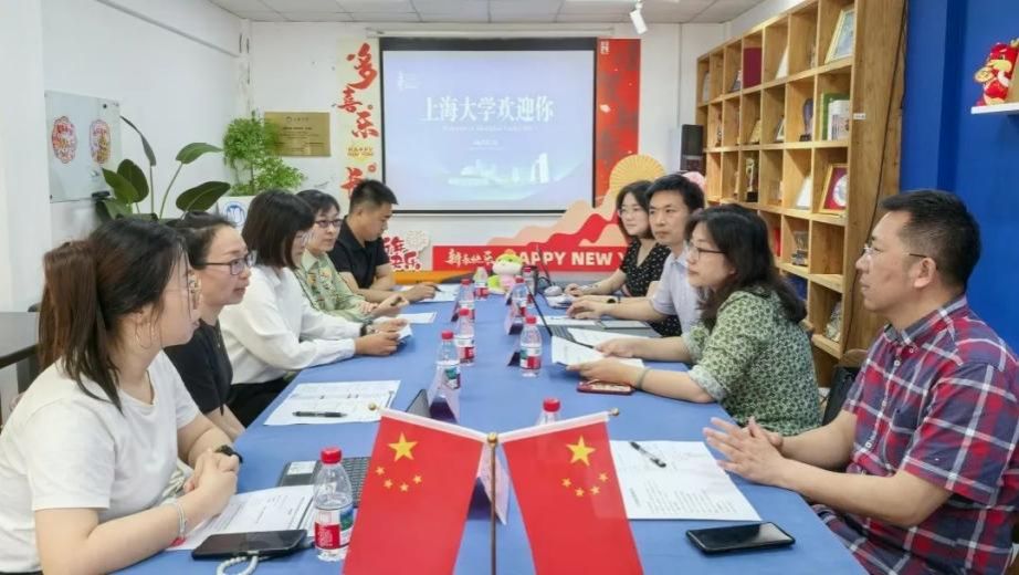 5月29日下午,国防科技大学外国语学院全军对外语言训练基地上校艾贵金、张金竹副教授、张璐副教授、讲师王若楠和教学科研处参谋高群彬一行到访我院。上海大学国际部党委书记王丽娜、国际部党委副书记陈秀猛、国际教育学院副院长裴雨来和刘婷婷参加了此次调研会谈。